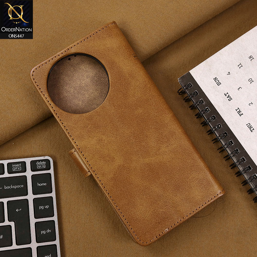 Vivo V30e Cover - Light Brown - Premium Leather Megantic Flip Book Covers With Card Holding Option