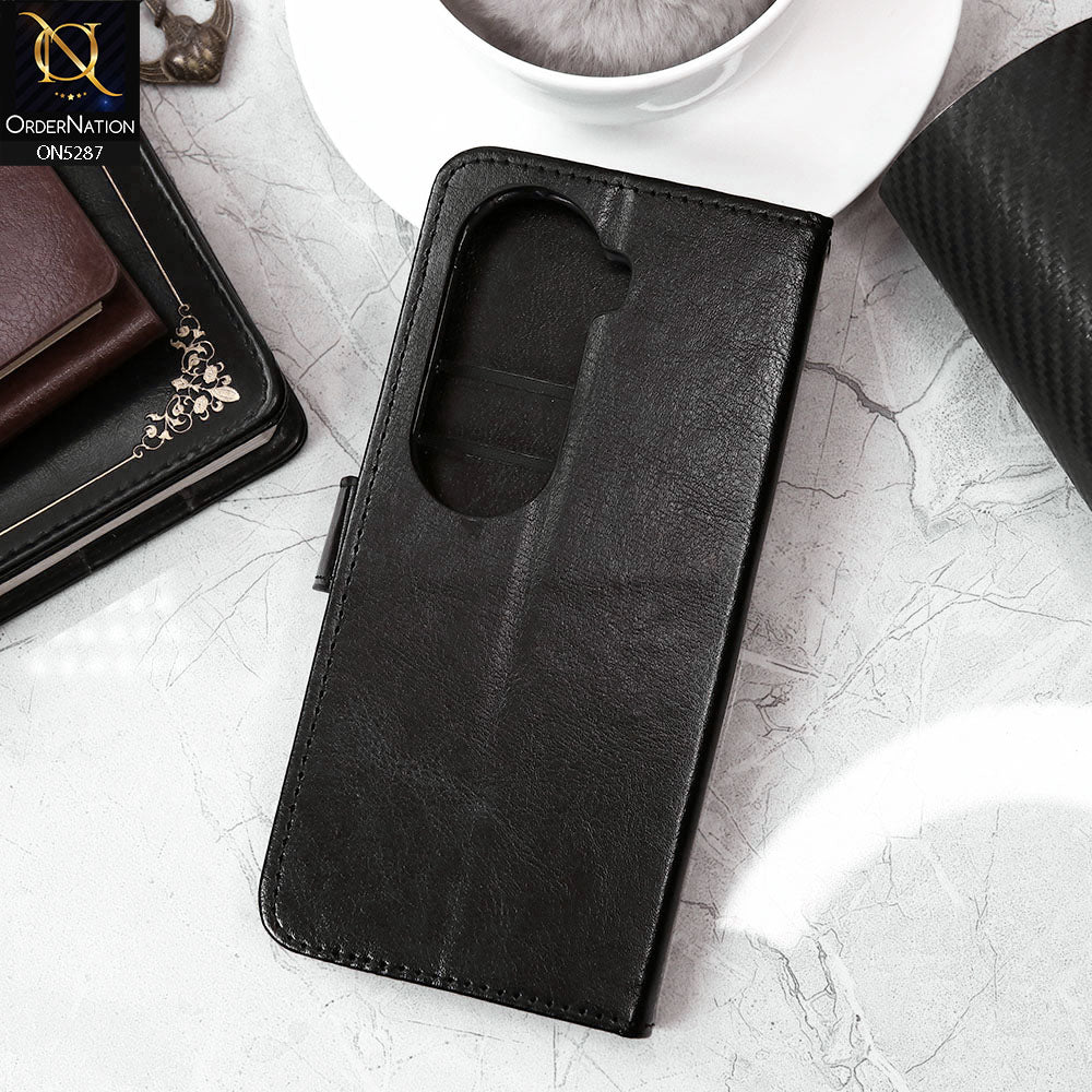 Vivo V40e Cover - Black - Premium PU Leather Magnetic Flip Book Card Slots Wallet Soft Case