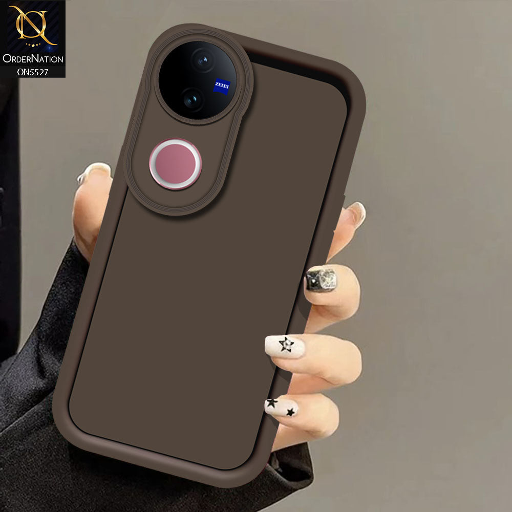 vivo V50 Cover - Brown -Soft Silicone Case With Round Bumper Matte TPU Shockproof Cover