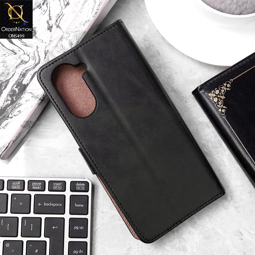 Vivo Y03t Cover - Black - Premium PU Leather Magnetic Flip Book Card Slots Wallet Soft Case