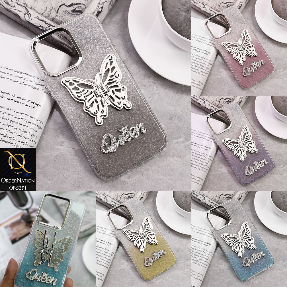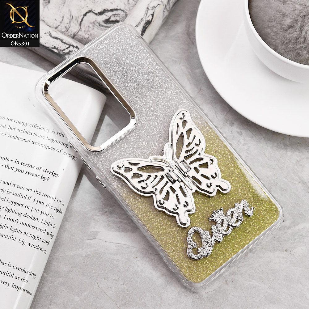 Vivo Y200e Cover - Golden - Trendy Queen Dual Tone Gradient Gliter Shiny Soft Case With Butterfly Kickstand Holder (Gliter Does Not Move)