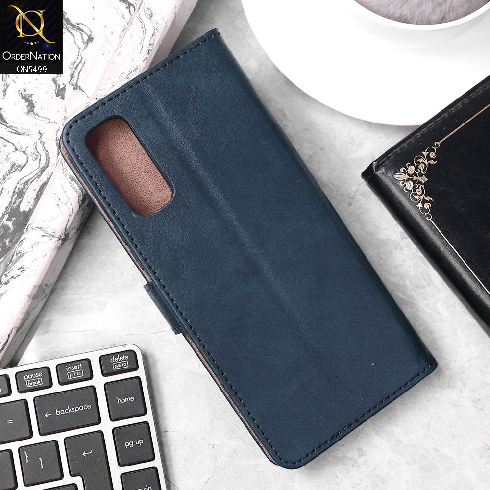 Vivo Y20i Cover - Blue - Premium PU Leather Magnetic Flip Book Card Slots Wallet Soft Case