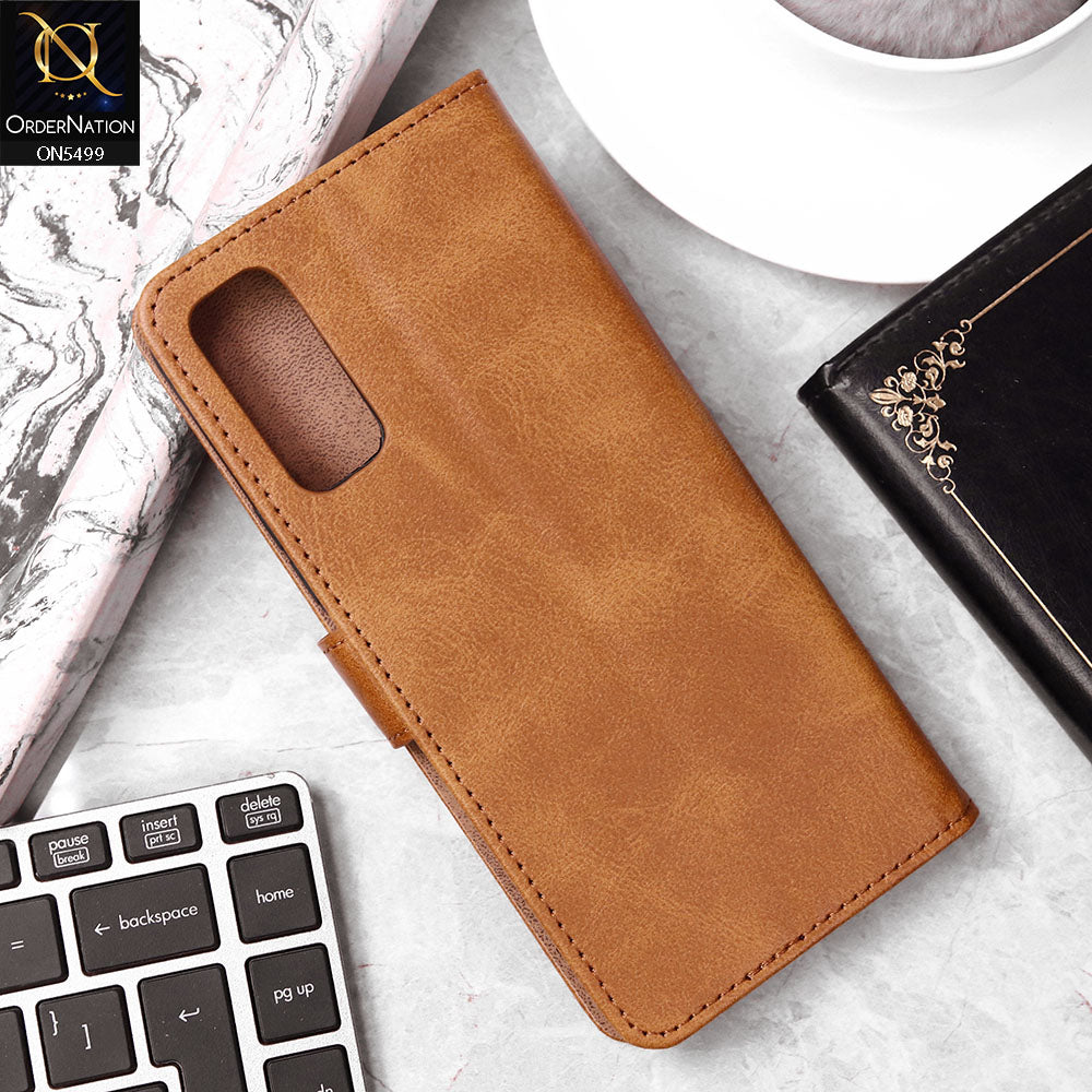 Vivo Y20i Cover - Light Brown - Premium PU Leather Magnetic Flip Book Card Slots Wallet Soft Case