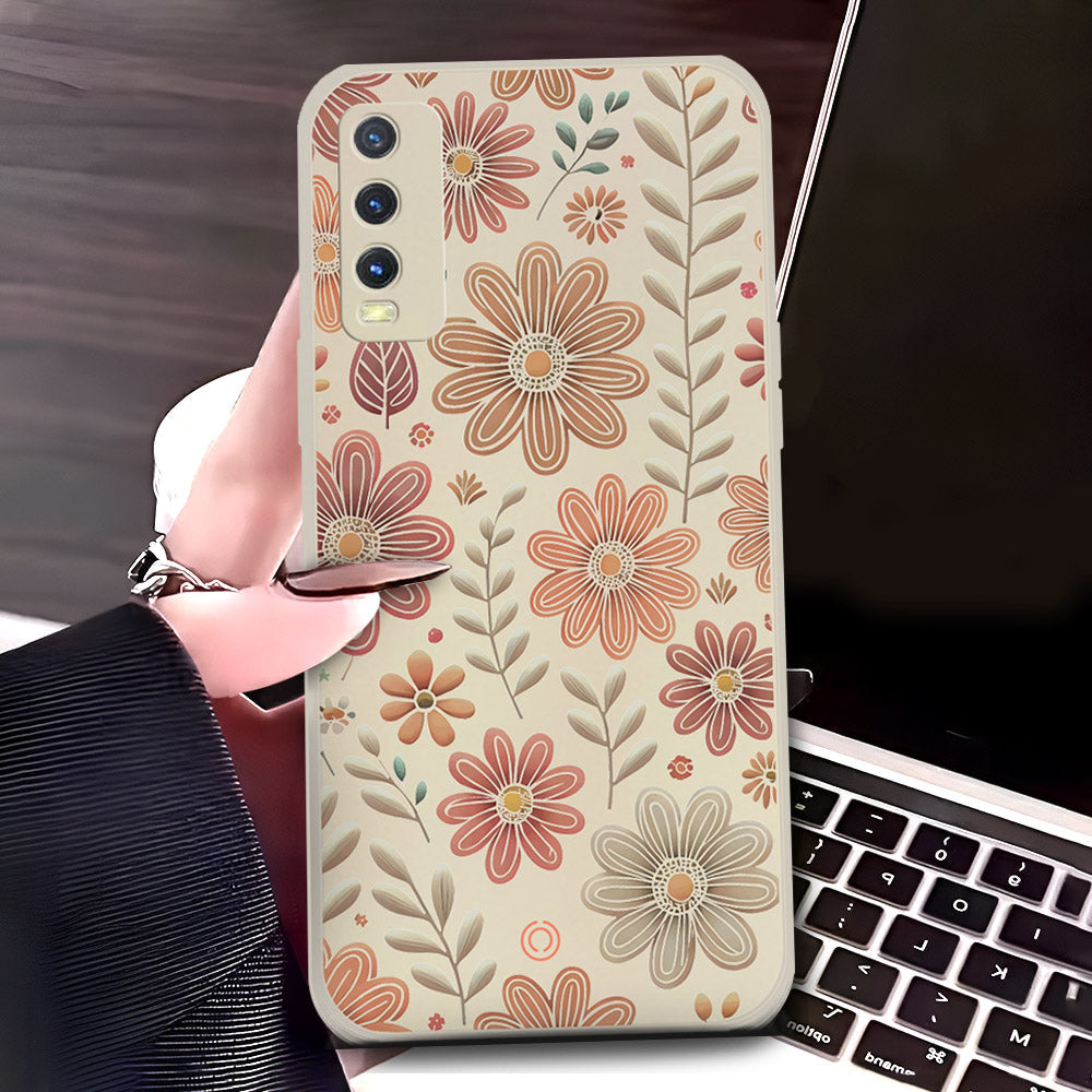 Vivo Y20i Cover - Off White - D4 - ONation Floral Series - HQ Liquid Silicone Soft Case