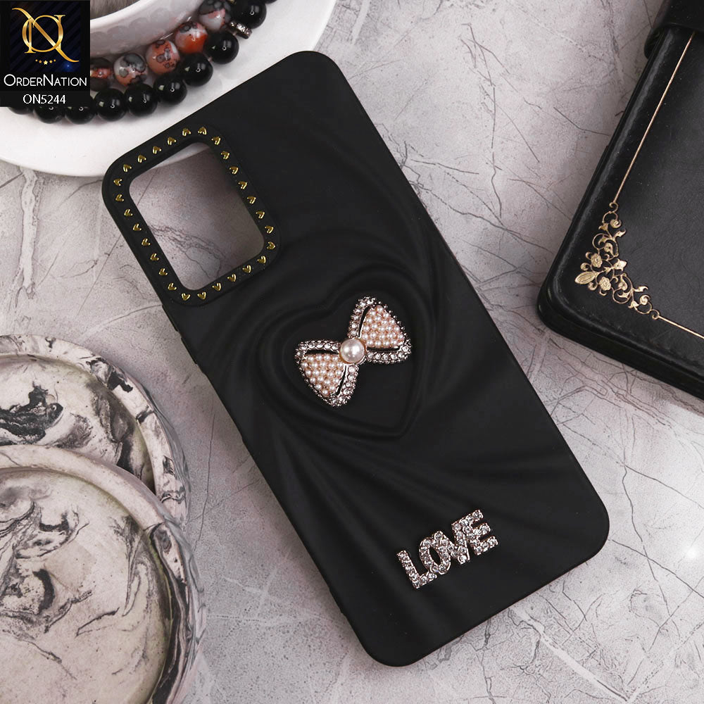 Vivo Y21 Cover - Black - 3D Love Rhinesteart Wrinkle Fold Design Soft Silicon Protective Case