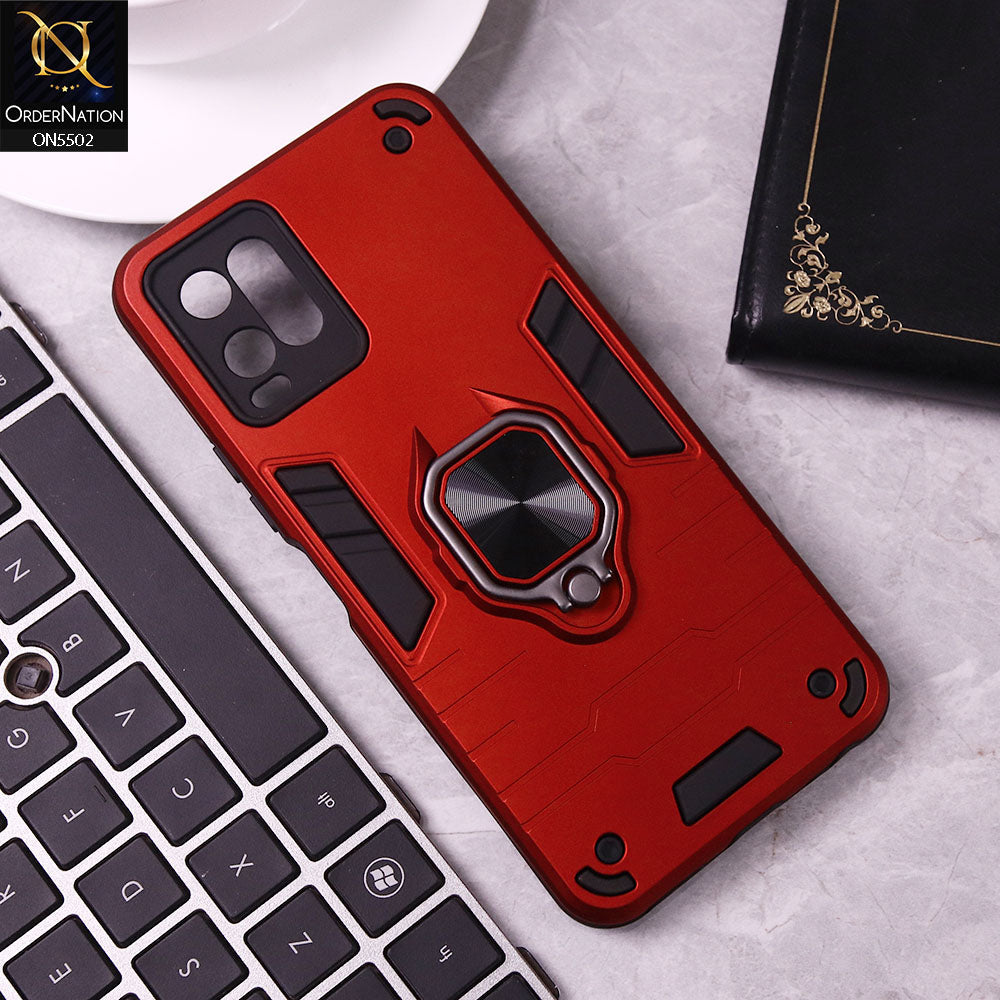 Vivo Y21 Cover - Red - New Dual PC + TPU Hybrid Style Protective Soft Border Case With Kickstand Holder