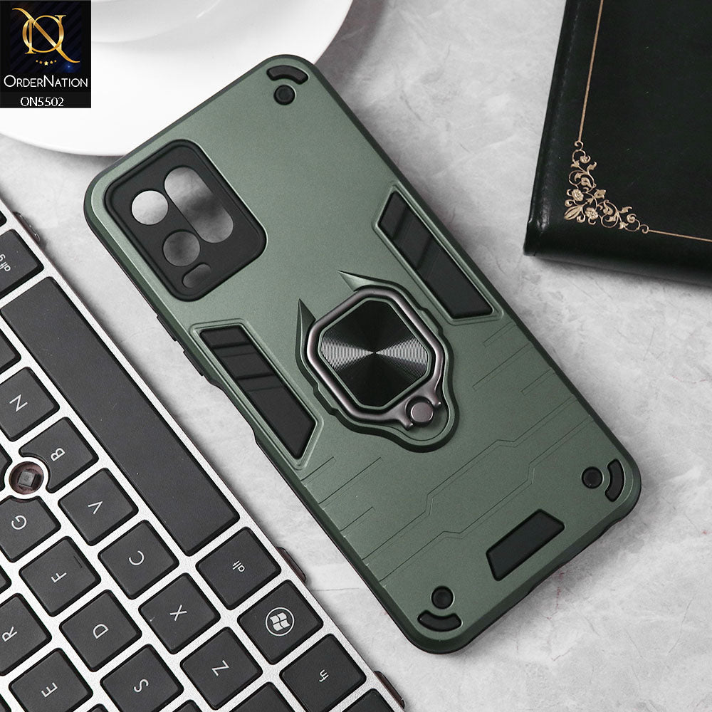 Vivo Y21 Cover - Sea green - New Dual PC + TPU Hybrid Style Protective Soft Border Case With Kickstand Holder