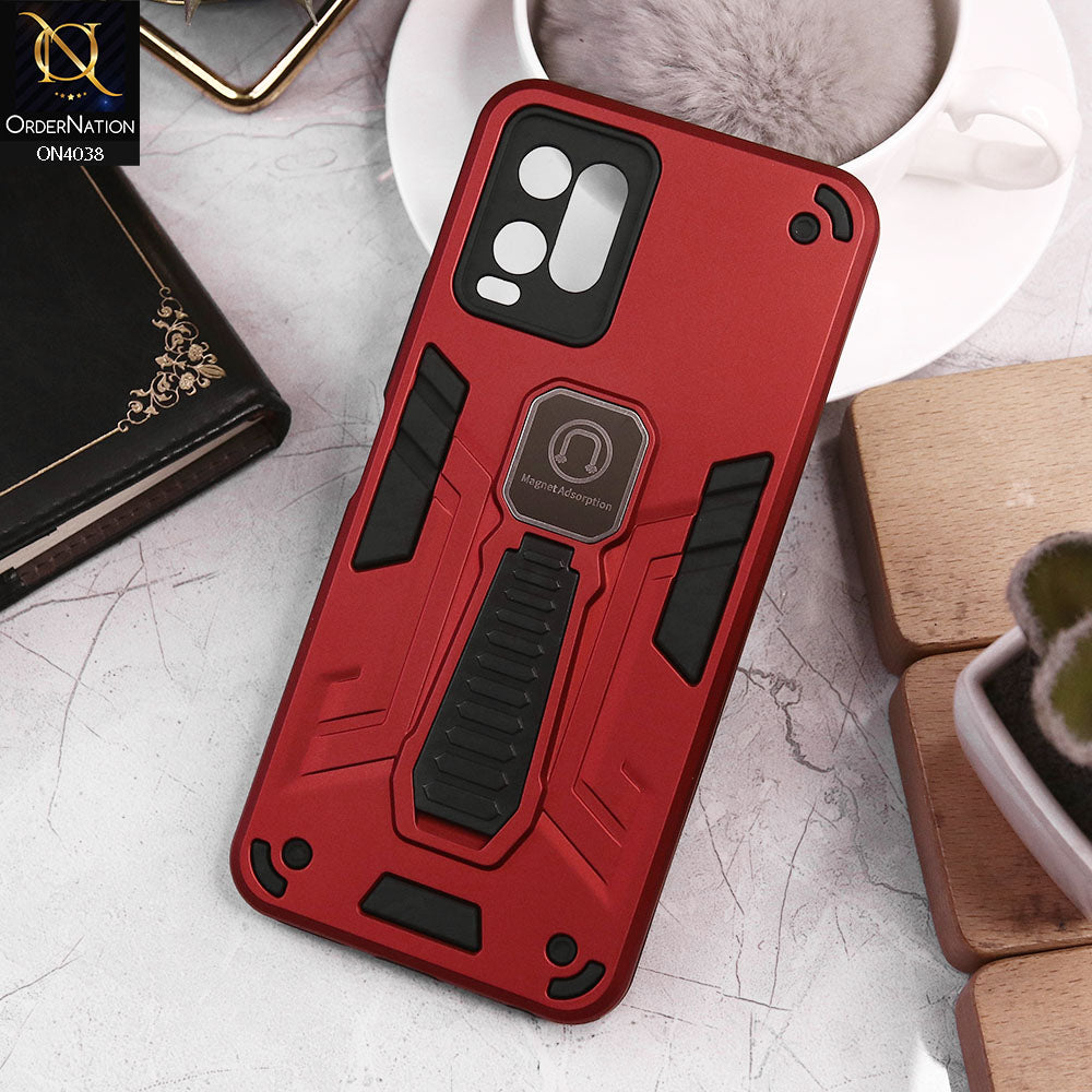 Vivo Y21a Cover - Red - Luxury Hybrid Shockproof Magnet Adsorption Stand Case