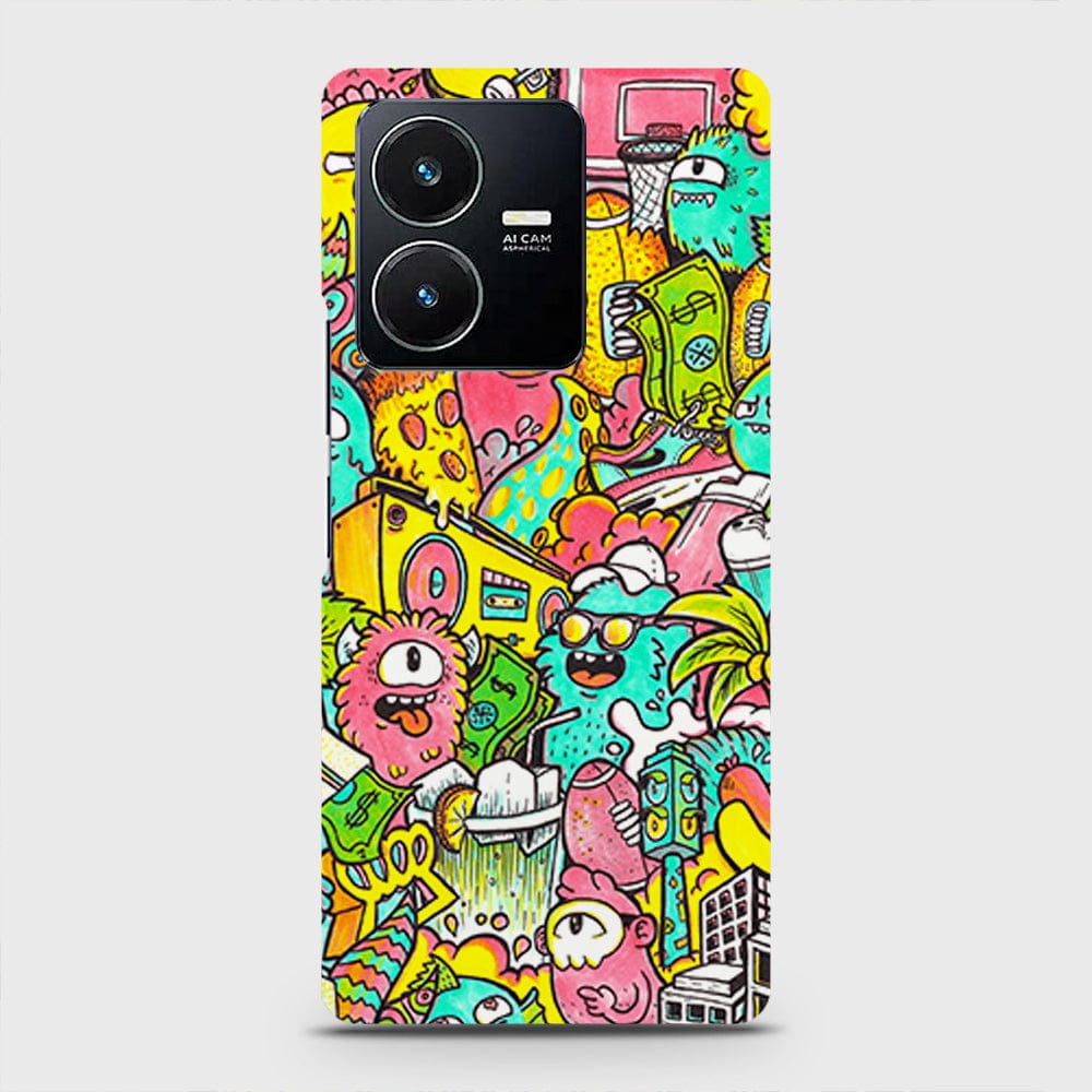 Vivo Y22s Cover - Candy Colors Trendy Sticker Collage Printed Hard Case with Life Time Colors Guarantee