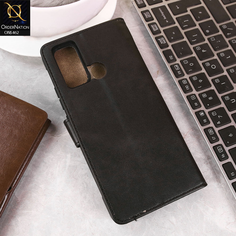 Vivo Y30 Cover - Black - Premium Leather Magnetic Flip Book Covers With Card Holding Option