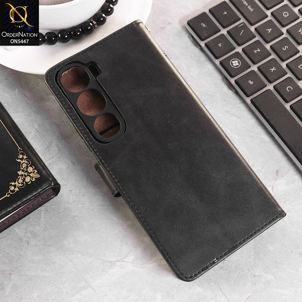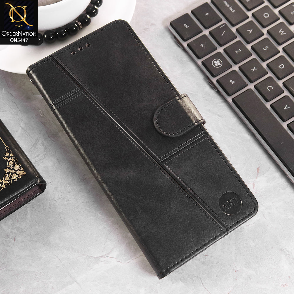 Vivo Y31 5G Cover - Black - Premium Leather Megantic Flip Book Covers With Card Holding Option