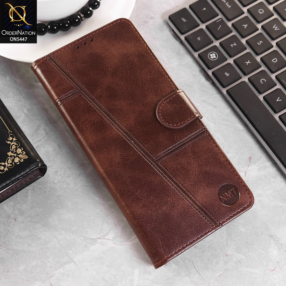 Vivo Y31 5G Cover - Dark Brown - Premium Leather Megantic Flip Book Covers With Card Holding Option