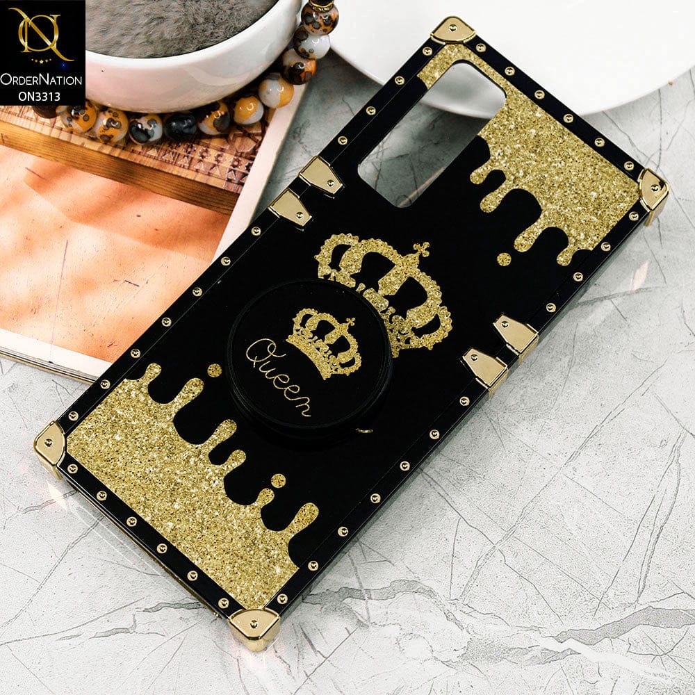 Infinix Note 7 Cover - Black - Golden Electroplated Luxury Square Soft TPU Protective Case with Popsocket Holder