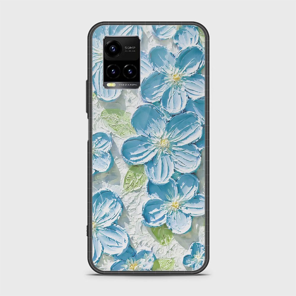 Vivo Y33s Cover - Floral Series - Design 12 - Grey & Green - HQ Ultra Shine Premium Infinity Glass Soft Silicon Borders Case