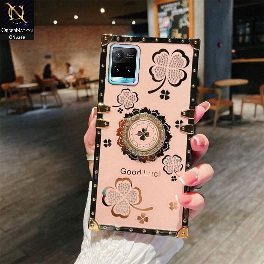 Vivo Y33s Cover - Pink - Square Bling Diamond Glitter Soft TPU Trunk Case with Ring Holder
