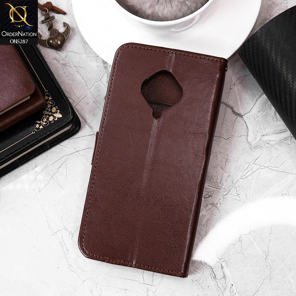 Vivo Y51 (2020 September) Cover - Brown - Premium PU Leather Magnetic Flip Book Card Slots Wallet Soft Case