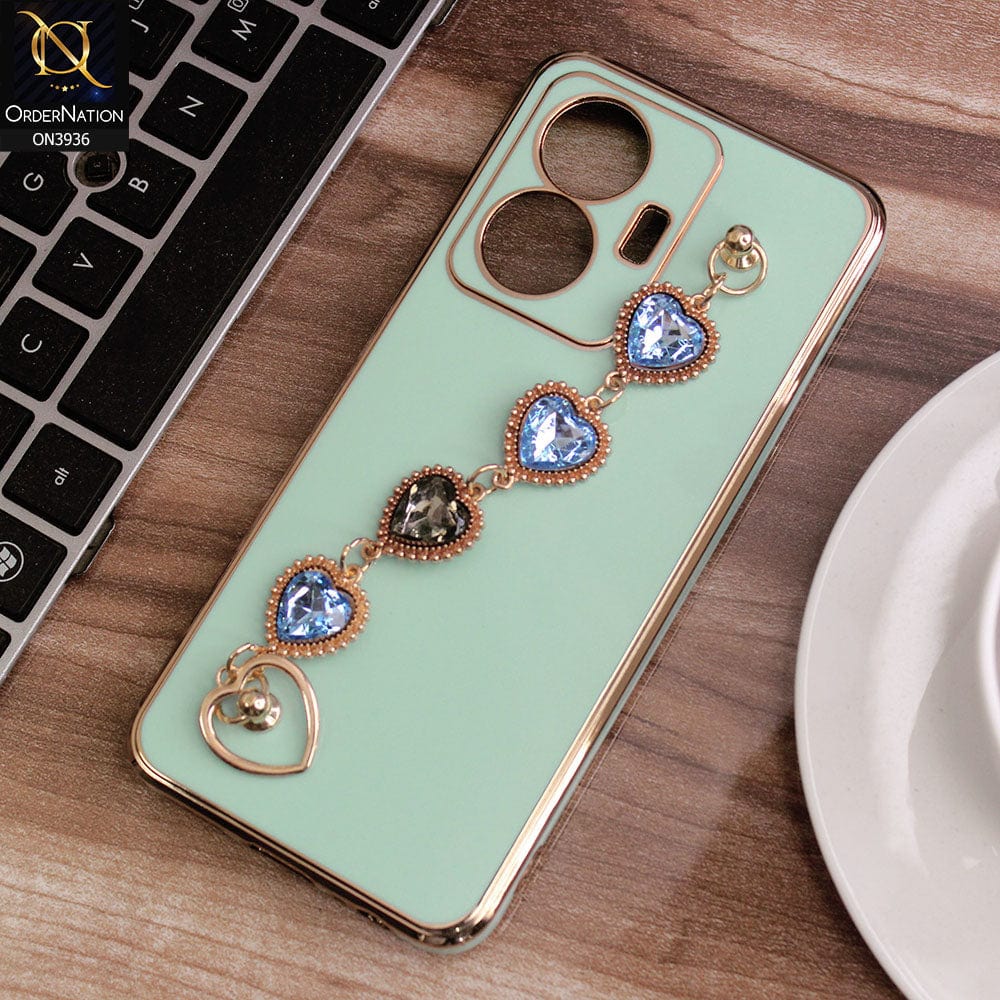 Vivo Y55 4G Cover - Sea Green - New Electroplating Silk Shiny Camera Bumper Soft Case With Heart Chain Holder