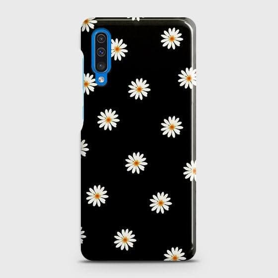 Samsung Galaxy A50s Cover - Matte Finish - White Bloom Flowers with Black Background Printed Hard Case with Life Time Colors Guarantee