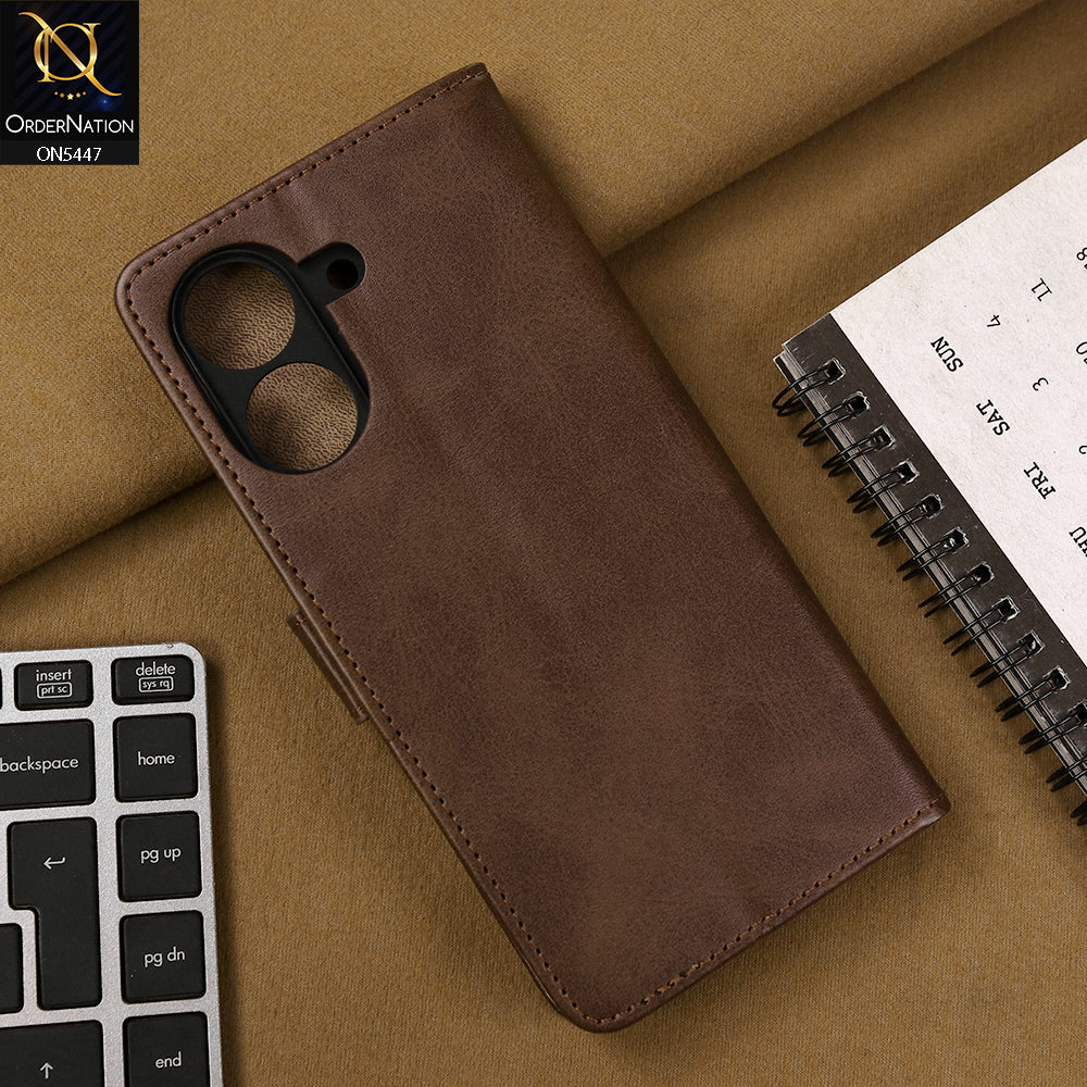 Xiaomi Poco C65 Cover - Dark Brown - Premium Leather Megantic Flip Book Covers With Card Holding Option