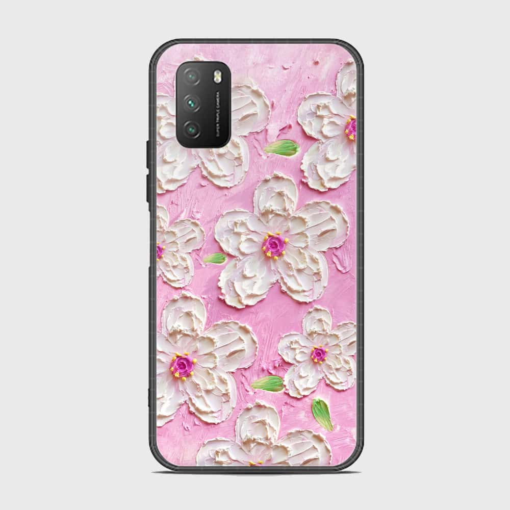 Xiaomi Poco M3 Cover - Floral Series - Design 5 - Pink & White - HQ Ultra Shine Premium Infinity Glass Soft Silicon Borders Case