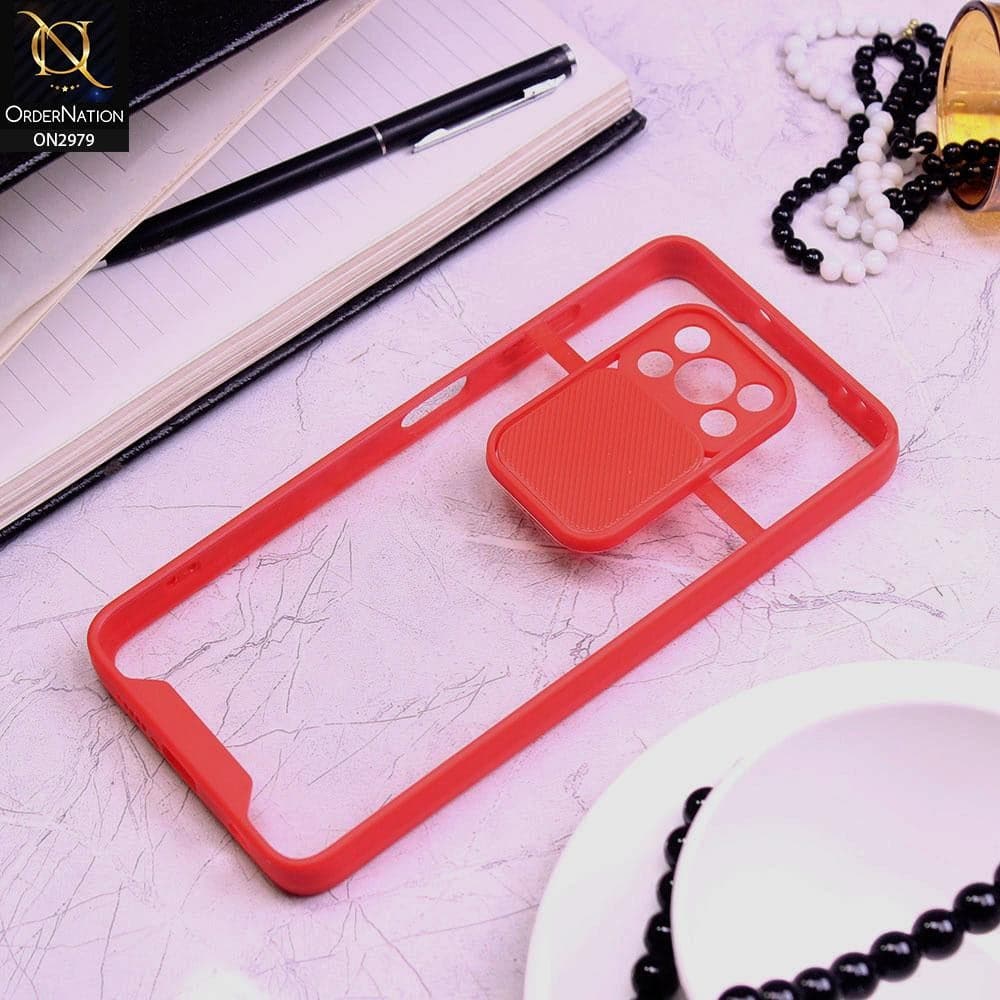 Xiaomi Poco X3 Cover - Red - Transparent Matte Shockproof Camera Slide Protection Case