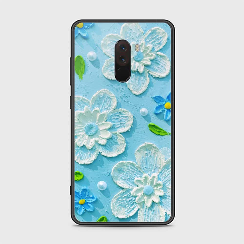 Xiaomi Pocophone F1 Cover - Floral Series - Design 3 - Sky Blue - HQ Ultra Shine Premium Infinity Glass Soft Silicon Borders Case