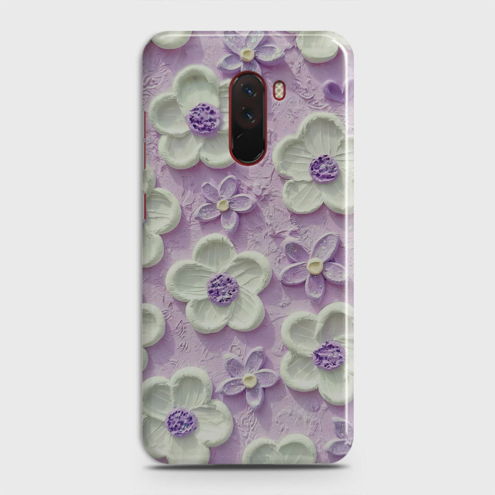 Xiaomi Pocophone F1 Cover - Floral Series - Design 4 - Purple & White - Matte Finish - Snap On Hard Case with LifeTime Colors Guarantee