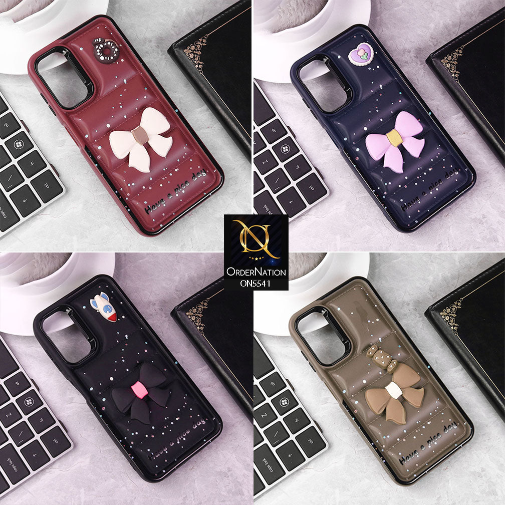 Xiaomi Redmi 10A Cover - Maroon - New 3D Bow Soft Puffer Case With Metal Camera Ring