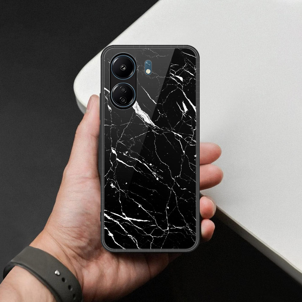 Xiaomi Redmi 13C Cover - Black Marble Series  - HQ Ultra Shine Premium Infinity Glass Soft Silicon Borders Case