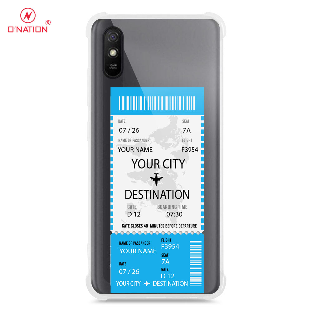 Xiaomi Redmi 9A Cover - Personalised Boarding Pass Ticket Series - 5 Designs - Clear Phone Case - Soft Silicon Borders