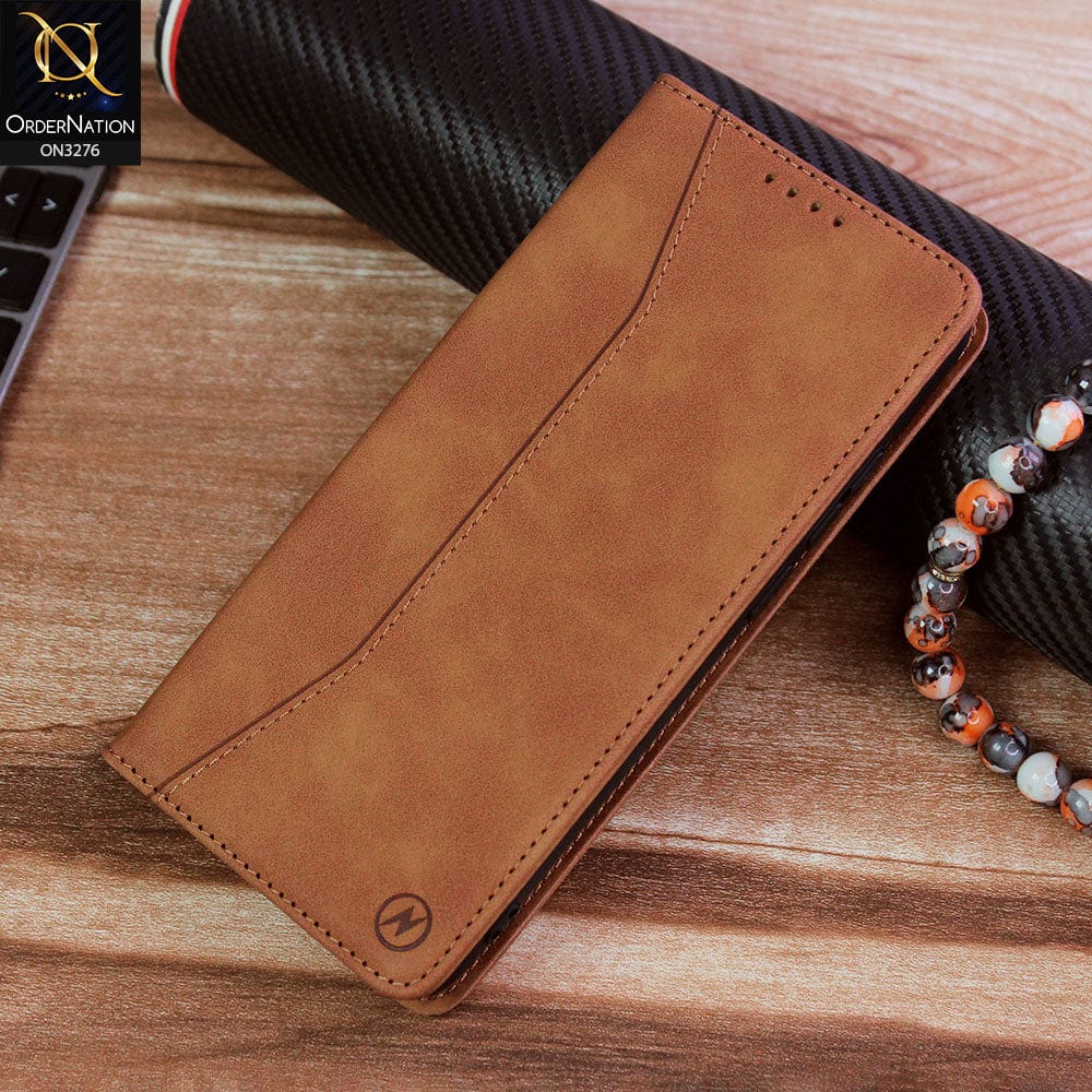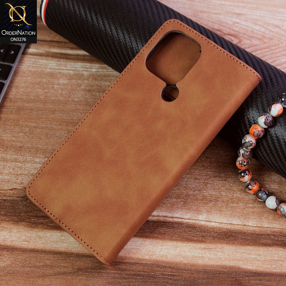 Xiaomi Redmi A1 Plus Cover - Light Brown - ONation Business Flip Series - Premium Magnetic Leather Wallet Flip book Card Slots Soft Case