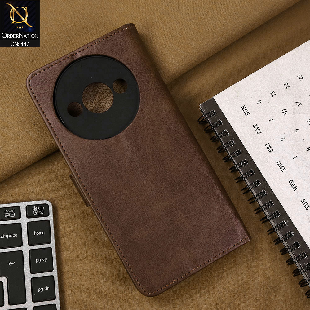 Xiaomi Redmi A3 Cover - Dark Brown - Premium Leather Megantic Flip Book Covers With Card Holding Option
