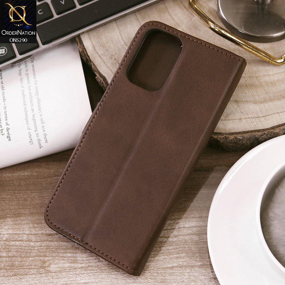 Xiaomi Redmi Note 10S Cover - Dark Brown - Premium Business Series Magnetic Leather Wallet Flip book Card Slots Soft Case