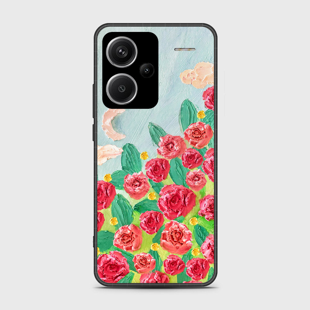 Xiaomi Redmi Note 13 Pro Plus 5G Cover - Floral Series - Design 10 - Red & Green - HQ Ultra Shine Premium Infinity Glass Soft Silicon Borders Case