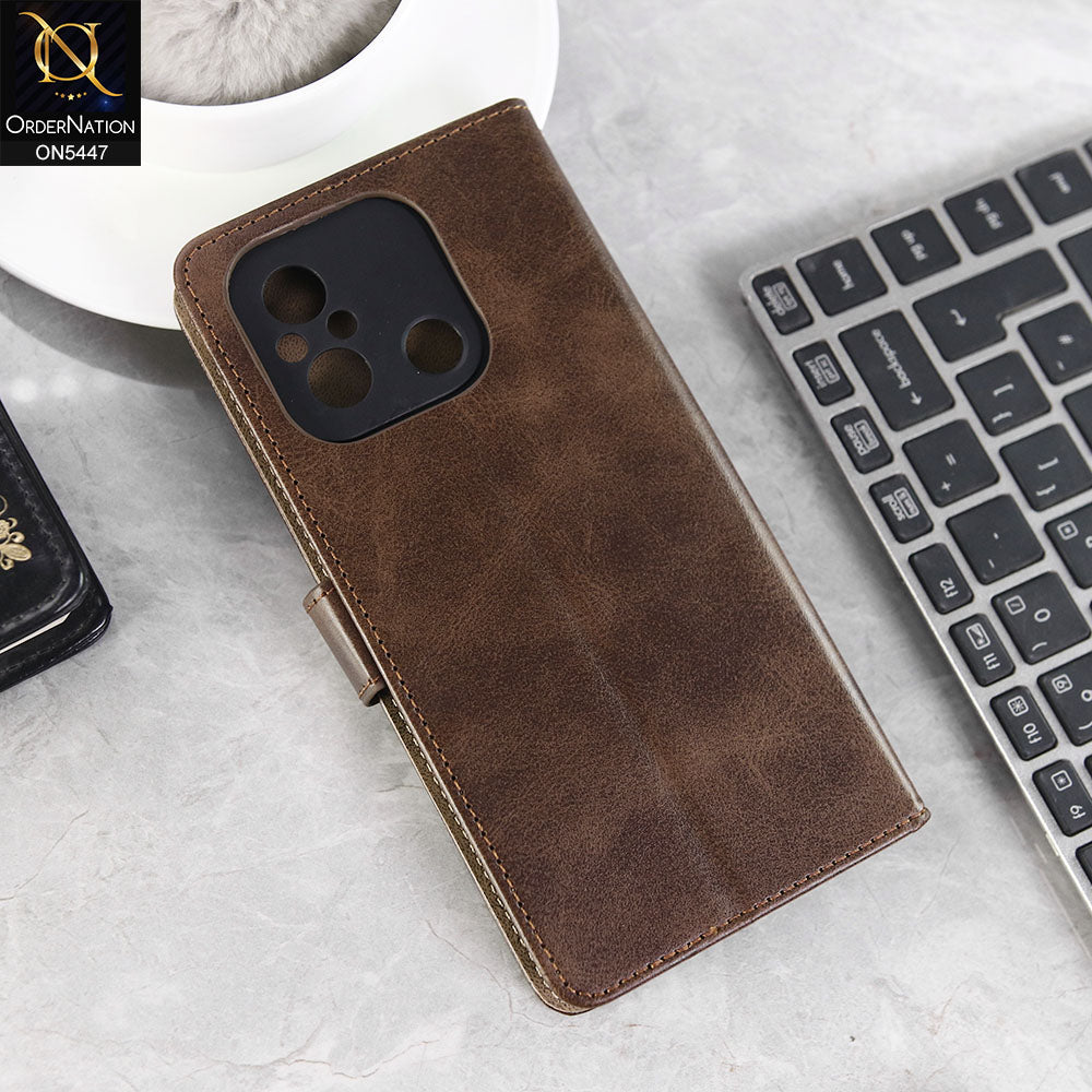 Xiaomi Redmi Note 13R Cover - Dark Brown - Premium Leather Megantic Flip Book Covers With Card Holding Option