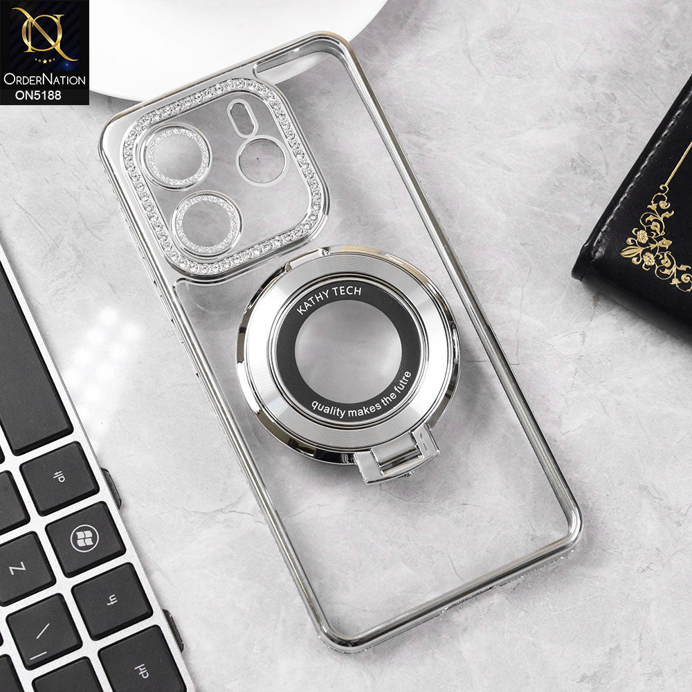 Xiaomi Redmi Note 14 4G Cover - Silver - Luxury Diamond Rhinestones Color Electroplating Borders Magsafe Magnetic Stand Holder Soft Clear Case With Camera Protection
