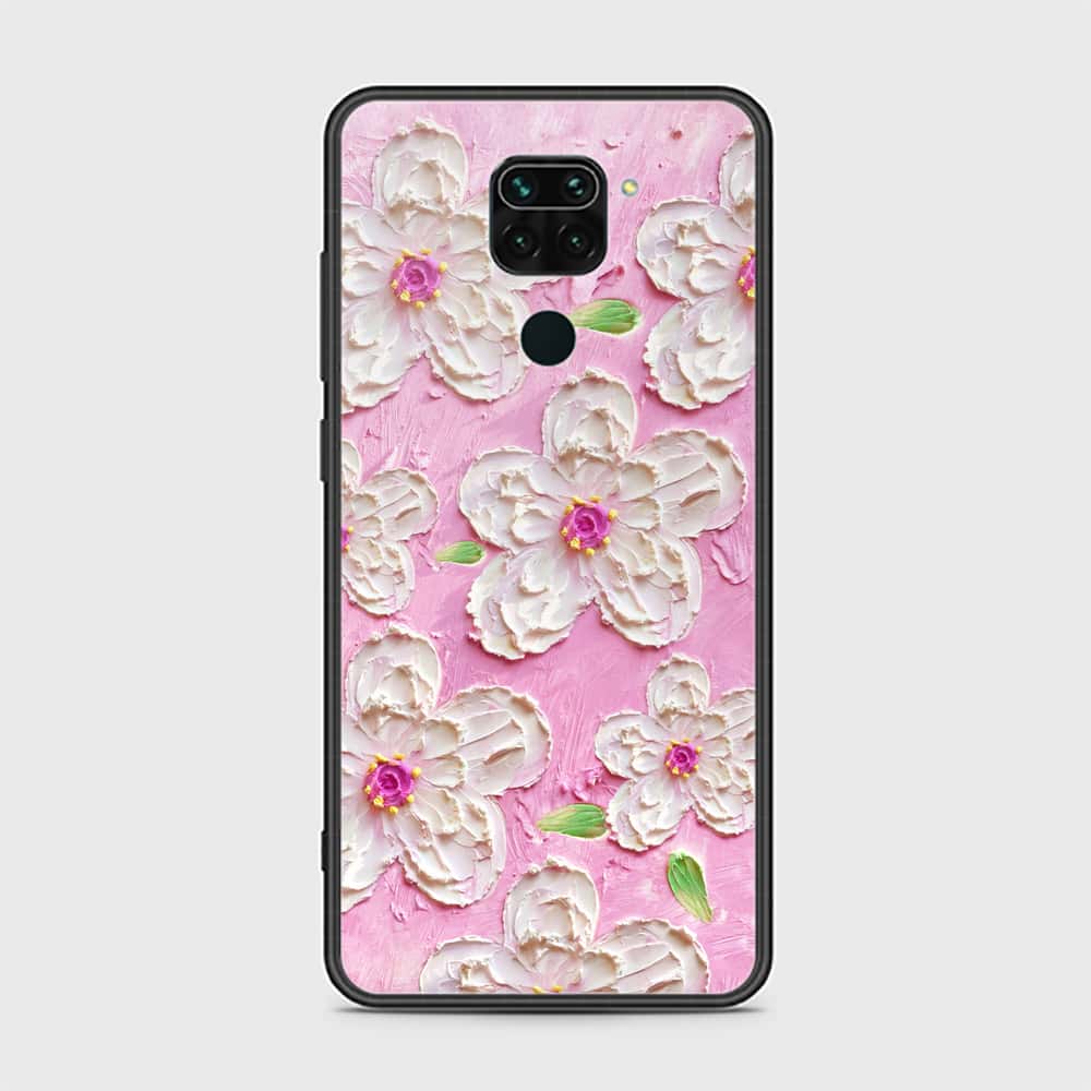 Xiaomi Redmi Note 9 Cover - Floral Series - Design 5 - Pink & White - HQ Ultra Shine Premium Infinity Glass Soft Silicon Borders Case
