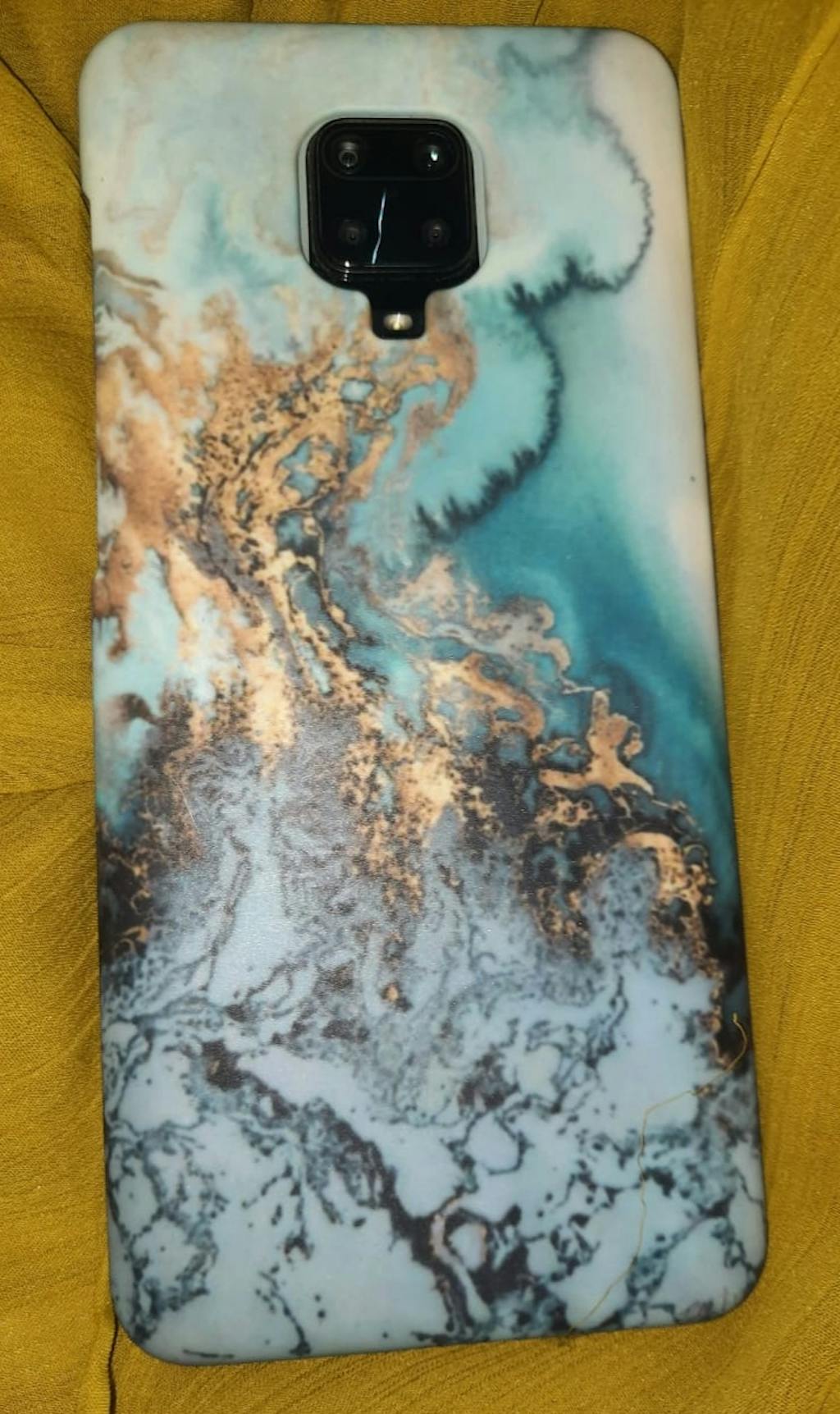 Xiaomi Redmi Note 9S Cover - Trendy Golden & Blue Ocean Marble Printed Hard Case with Life Time Colors Guarante